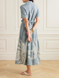 Claudia Palm Belted Embroidered Ramie And Linen-blend Midi Dress