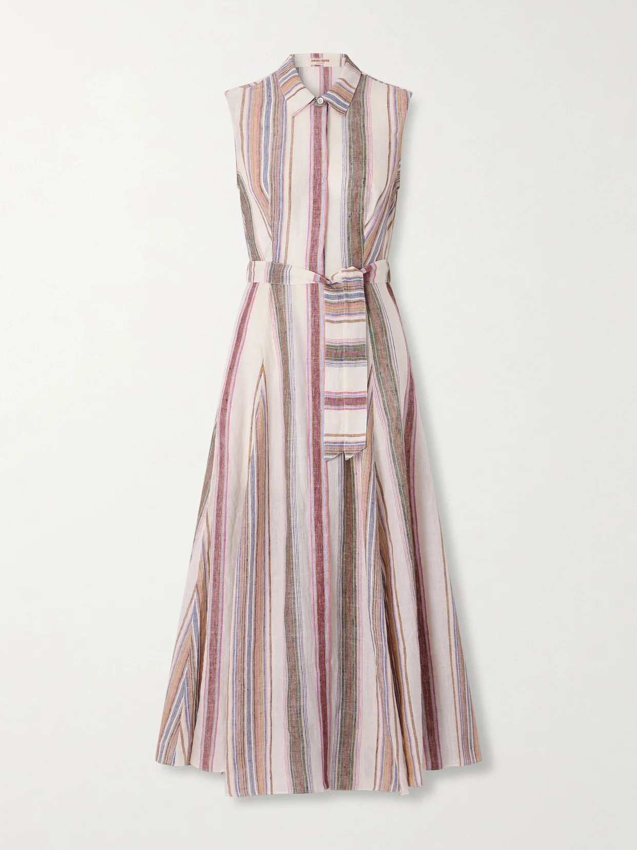Milarda Belted Striped Linen Midi Dress