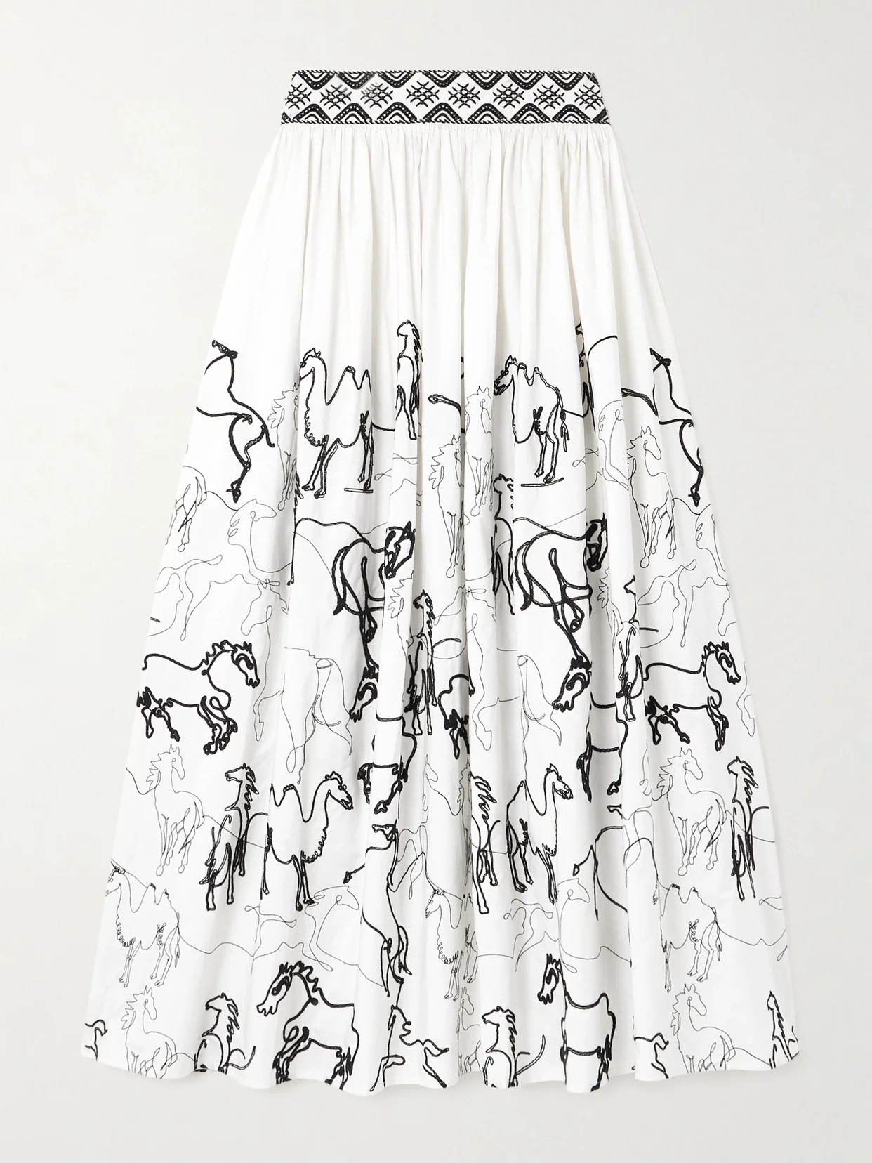 Ombretta Embroidered Cotton-blend Poplin Maxi Skirt