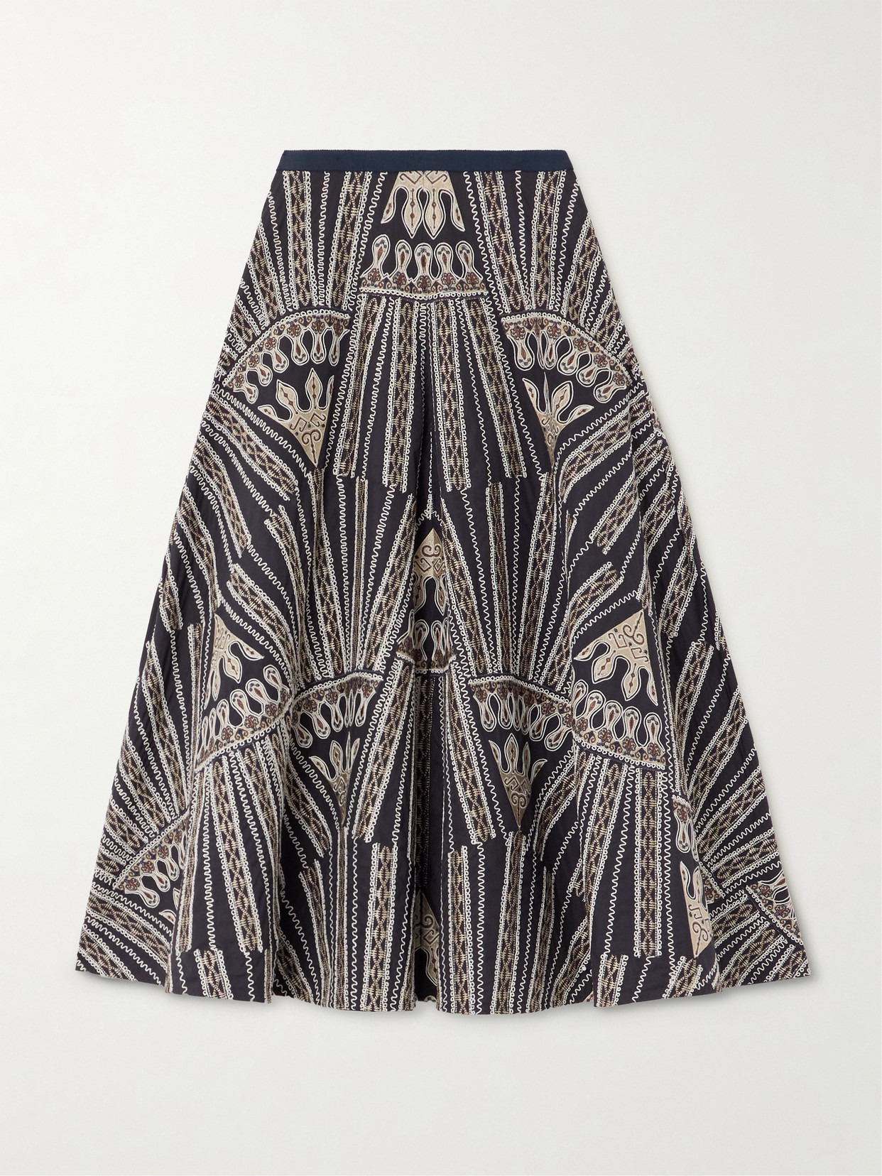 Tasha 2 Calliope Paneled Embroidered Cotton-blend Poplin Midi Skirt