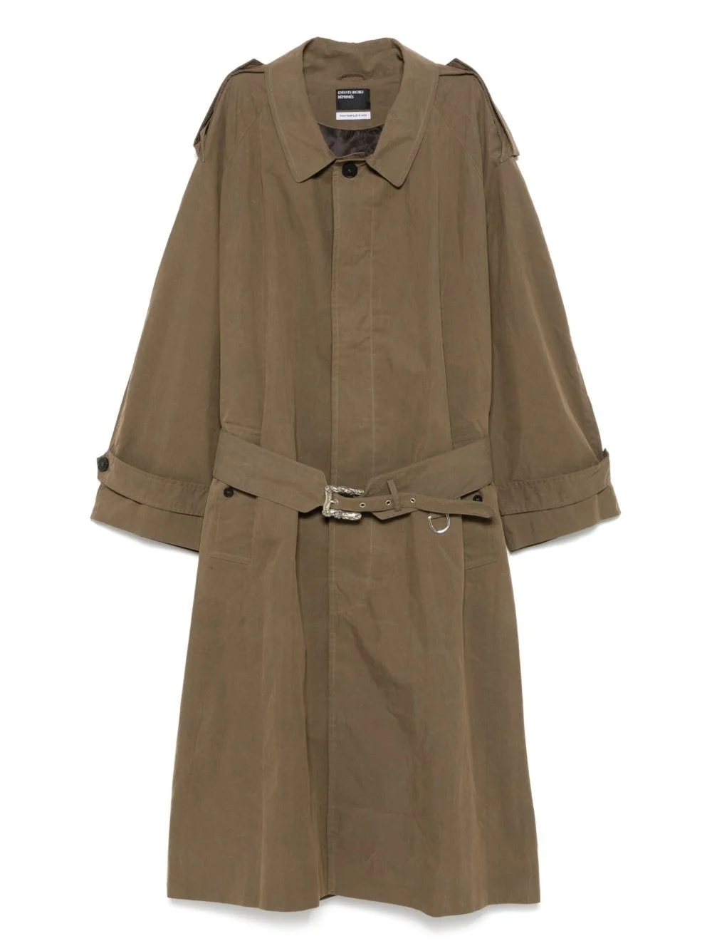 belted coat Highlights - Chestnut brown - Concealed front button fastening - Two side button-fastening pockets - Epaulettes - Belted cuffs Made in Italy Composition Lining: Viscose 100% Outer: Cotton 71%, Polyamide 29%