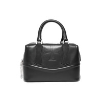 The Bowling Bag by Enfants Riches Deprimes is a luxury accessory crafted from full-grain calfskin. This large top-handle bag has twin rolled carry handles and an embossed iron cross logo on the front, adding a unique touch. The main compartment is secured with a zipper closure, complemented by a custom logo lock and hardware for enhanced security. Inside, there is an interior zip pocket for organized storage. Made in Italy, this bag combines functionality with top-quality craftsmanship.