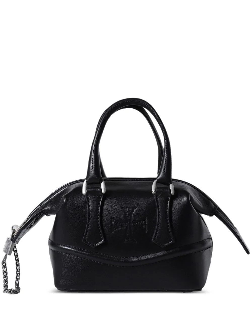 bowling mini bag Highlights - Black - Top zip fastening - Two rolled top handles - Padlock and key detail - Chain-link detailing Imported Composition Leather 100% SIZE & FIT Measurement DEPTH 3.93 in(10 cm) HEIGHT 6.69 in(17 cm) WIDTH 4.72 in(12 cm)