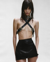 LEATHER SIDE BUCKLE MINI SKIRT