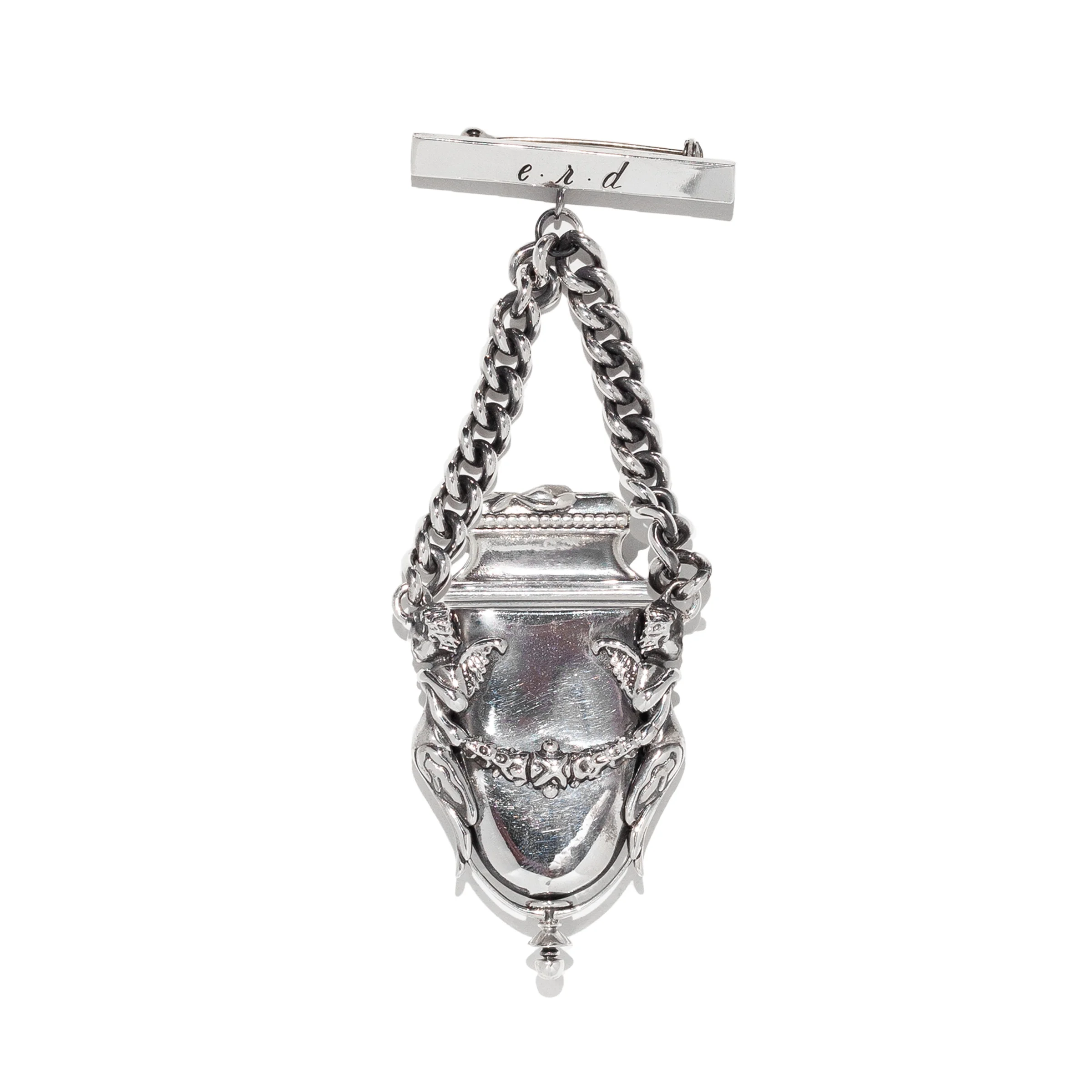 STUDIO CAST OFFICER BROOCH IN .925 STERLING SILVER. BAR FASTENER WITH CHAIN. MADE IN THE USA.
