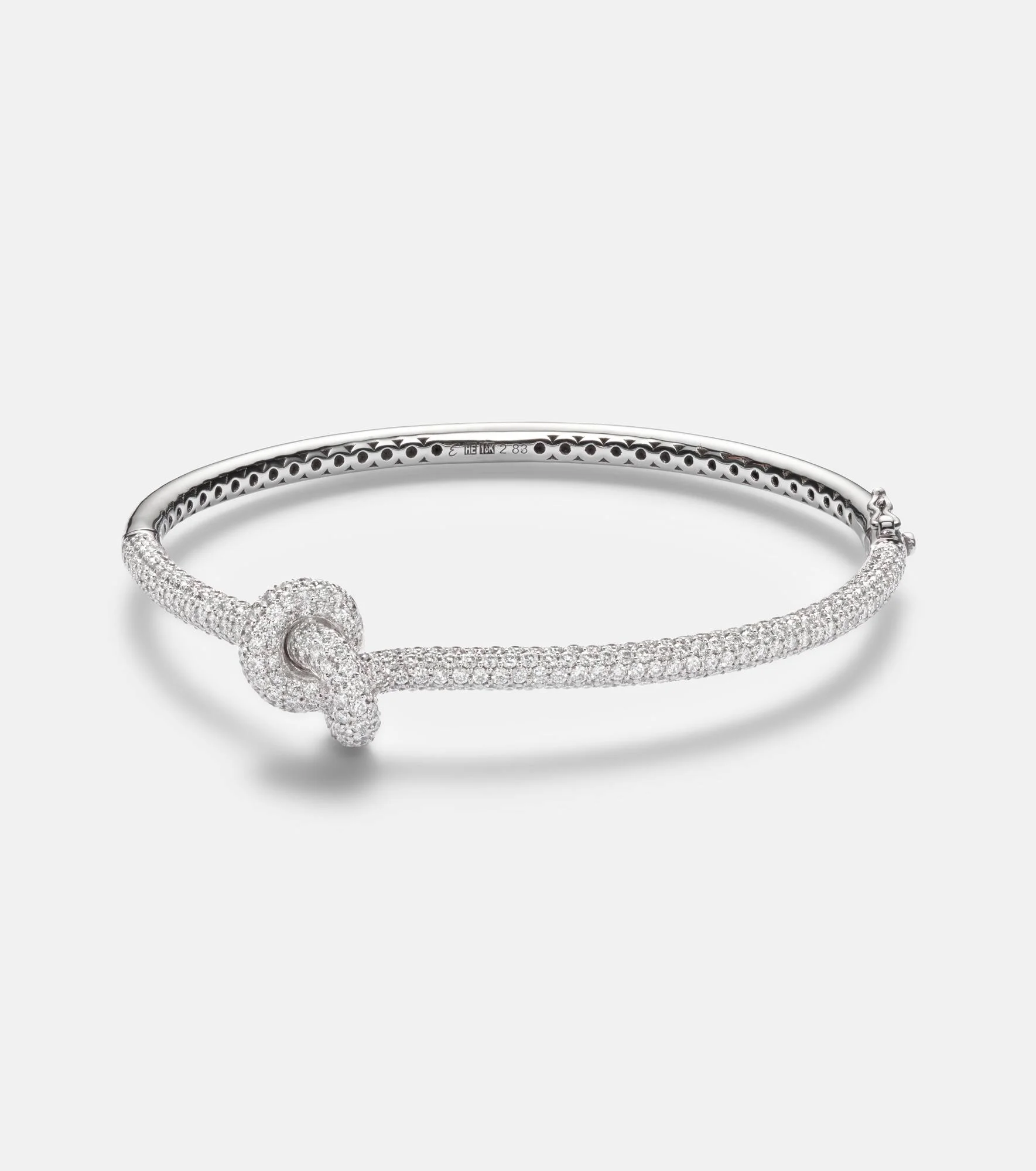 Stockholm-based Engelbert translates its penchant for meticulous craft into timelessly elegant creations. Featuring the house's signature Legacy Knot motif, this bracelet is made from gleaming 18kt white gold and adorned with dazzling diamonds in a pave setting. Product Details - Material: 18kt white gold (750/1000) - Made in India - Item color: white gold - Color: silver - Stone I: diamonds, round-cut, pave setting, 2.8ctw - Item number: P01120560 Size & Fit - Min. width 2,5mm-0.1" - Max. width 10mm-0.4" - Circumference 16,5cm-6.5"