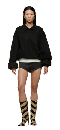 - 97% COTTON 3% SPANDEX - PULL OVER - FRONT PLACKET + BUTTONS - ELASTICATED HEM - INSEAM SIDE POCKETS - PLEATING DETAILING