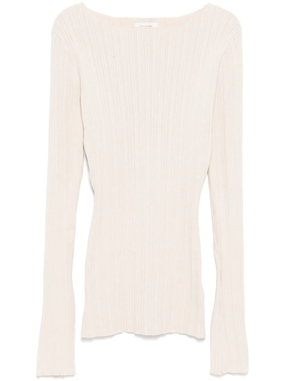 Arches knit top Highlights - Beige - Boat neck - Ribbed knit - Long sleeves Imported Composition Cotton 100% SIZE & FIT Model measurements Height 5 ft 10 in(1.78 m) Bust/Chest 24.4 in(62 cm) Hips 35.43 in(90 cm) Waist 31.88 in(81 cm) FittingInformation Designed for a slim fit that sits just away from the body offering a close yet comfortable fit Constructed with additional length on the sleeve Made with a lightweight knit, this piece offers some stretch