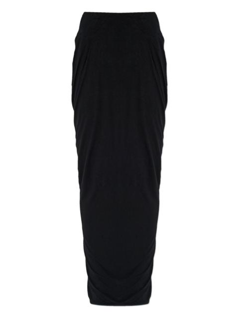 asymmetric maxi skirt Highlights - Black - Draped detail - Asymmetric hem - Maxi length Imported Composition Viscose 92%, Spandex/Elastane 8% SIZE & FIT Model measurements Height 5 ft 11 in(1.8 m) Bust/Chest 30.7 in(78 cm) Hips 35.23 in(89.5 cm) Waist 25.19 in(64 cm) Washing instructions Read Manufacturer Guidelines