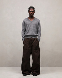 - 100% organic cotton twill - 310 gsm - This item is garment dyed and enzyme washed which may result in slight variation in exact colour - Wide leg cargo pant - Knee pleat detailing - Drawstring waistband and hem - Unisex sizing