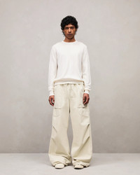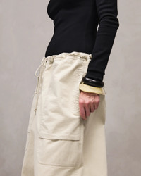 - 100% organic cotton twill - 310 gsm - This item is garment dyed and enzyme washed which may result in slight variation in exact colour - Wide leg cargo pant - Knee pleat detailing - Drawstring waistband and hem - Unisex sizing