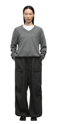 - 55% POLYESTER, 45% WOOL - WIDE LEG CARGOS - FRONT GUSSET POCKETS - PLEAT DETAILING - DRAW STRING AT WAISTBAND - DRAW STRING AT HEM CUFF