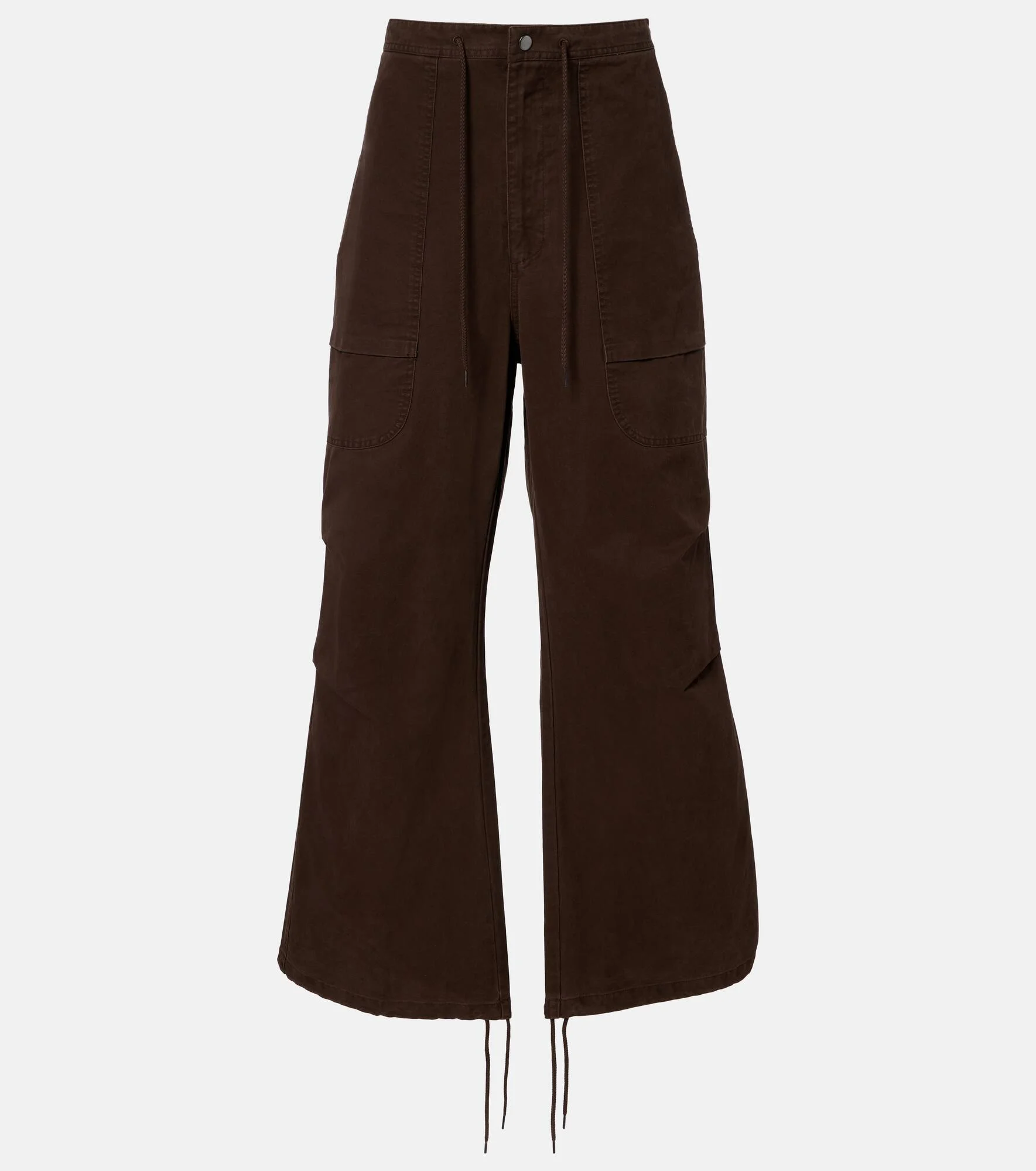 The Barren cargo pants from Entire Studios combine utilitarian style with everyday comfort. Cut from cotton, this brown pair is finished with a drawstring waist, cargo pockets, and back pockets. Product Details - Material: 100% cotton - Care instructions: machine wash at 30 degrees - Made in China - Color: brown - Designer color name: Brunette - Closure: zipper fly, button fastening - Drawstring waist - Pockets: side slit pockets, back pockets - Item number: P01151533 Size & Fit - Fits large to size - we recommend trying one size smaller - Adjustable at the waist - Non-stretchy fabric - Wide-leg - The model in the picture is 185cm-6'1" and wearing a size XXS