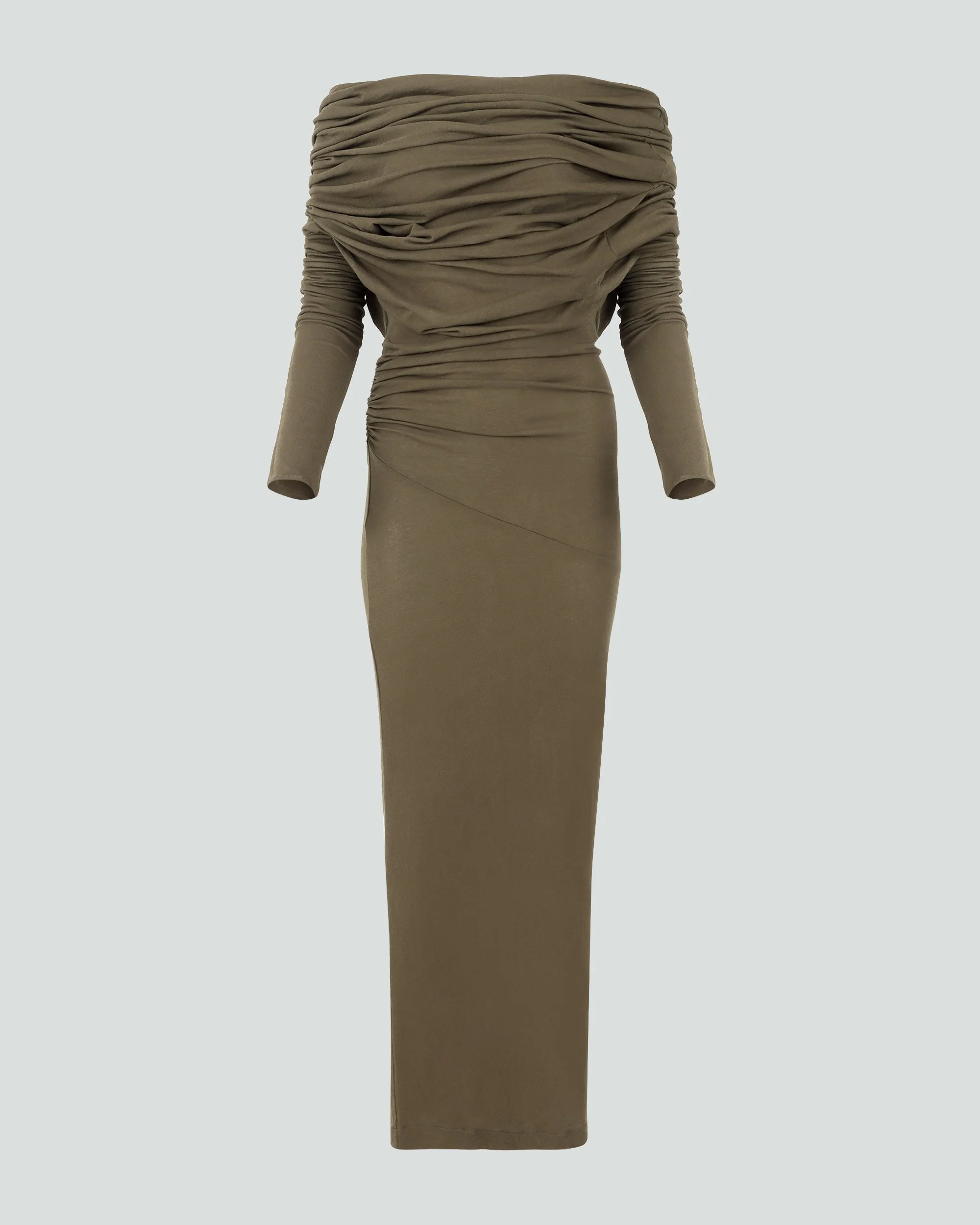 - SHEER COTTON BLEND - 94% COTTON 6% ELASTANE - DRAPE NECKLINE - PLEAT AND GATHERED DETAILING - MIDI LENGTH - BACK SPLIT