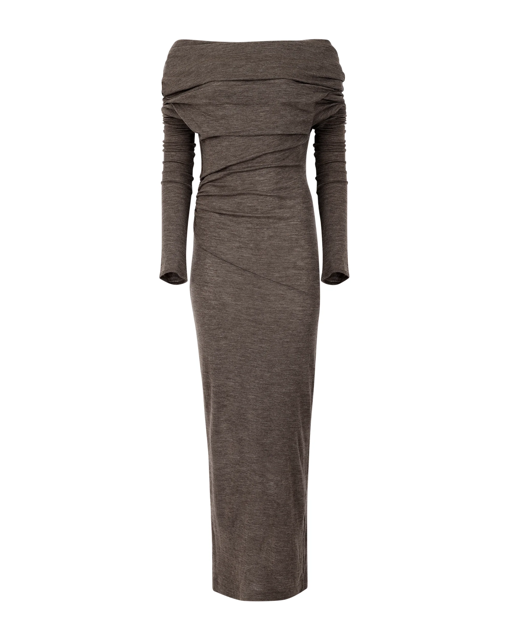 - 100% WOOL - DRAPE NECKLINE - PLEAT AND GATHERED DETAILING - MIDI LENGTH - BACK SPLIT