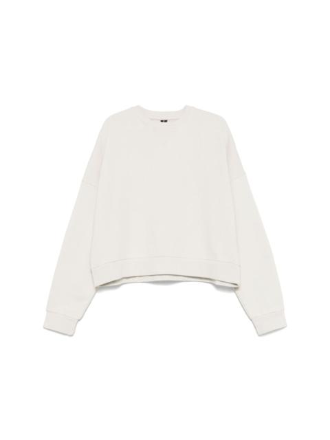 melange-effect cotton sweatshirt Highlights - Black - Organic cotton - Washed - Melange effect - Round neck - Drop shoulder - Long sleeves - Ribbed cuffs and hem - Straight hem - When buying this unisex item, keep in mind that it is graded in standard men's sizing. Imported Composition Organic Cotton 100% SIZE & FIT Model measurements Height 5 ft 11 in(1.8 m) Bust/Chest 31.49 in(80 cm) Hips 36.22 in(92 cm) Waist 25.59 in(65 cm) Measurement CHEST 57.48 in(146 cm) SLEEVE LENGTH 19.68 in(50 cm) Shoulder Width 29.52 in(75 cm) LENGTH 21.65 in(55 cm) FittingInformation This piece is unisex – if you usually select men's sizing expect a loose fit throughout; if you usually select women's sizes, expect an oversized fit Washing instructions Machine Wash