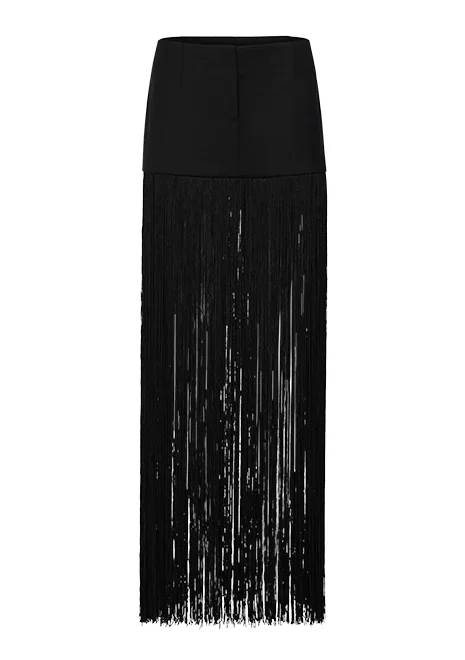 - WOOL SUITING BLEND - CF YKK METAL ZIPPER - FRINGING DETAILING AT HEM - SHAPING DARTS - MINI LENGTH - FULLY LINED
