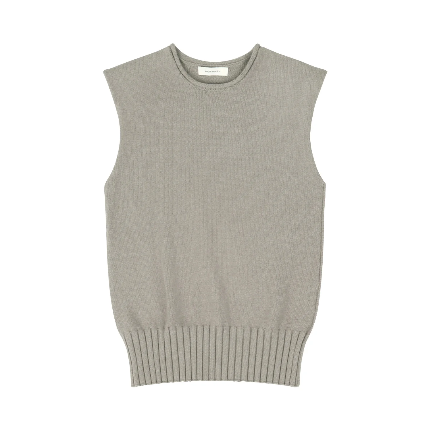 - 100% high twist cotton - Rib hem - Shoulder pads - Round neck - Knitted vest