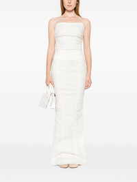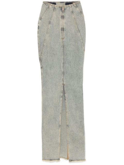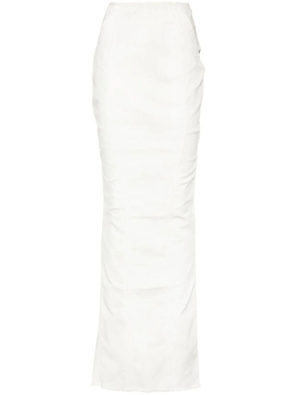 Channel maxi skirt Highlights - Bone white - Cotton blend - Stretch-design - Denim - Seam detailing - Two side zip-fastening pockets - Rear slit - Long length - Unlined - Frayed straight hem - Concealed rear zip fastening Imported Composition Cotton 99%, Elastane 1% SIZE & FIT Model measurements Height 5 ft 10 in(1.77 m) Bust/Chest 33.85 in(86 cm) Hips 37 in(94 cm) Waist 26.37 in(67 cm) Measurement HIPS 33.85 in(86 cm) LENGTH 47.24 in(120 cm) WAIST 20.86 in(53 cm) FittingInformation This maxi-length skirt is intended to be worn high on the waist The vented hem offers movement at the rear Constructed from stretch denim, this piece offers a stretch fit with durability This piece fits true to size – take your usual size