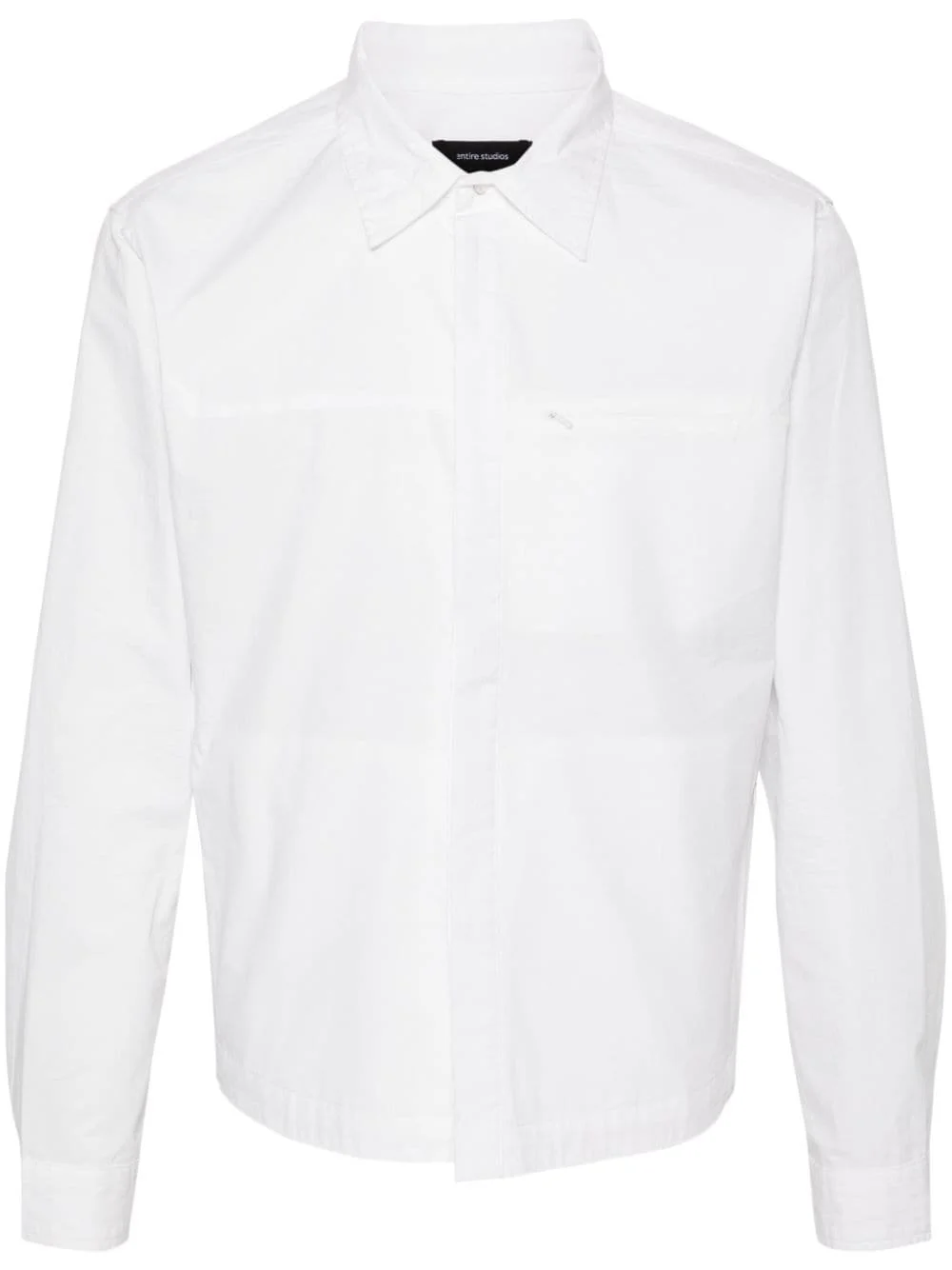 classic-collar cotton shirt Highlights - White - Cotton - Poplin texture - Box-pleat detail - Classic collar - Concealed front button fastening - Long sleeves with buttoned cuffs - Zip-fastening chest pocket - Two side zip-fastening pockets - Curved hem - When buying this unisex item, keep in mind that it is graded in standard men's sizing. Imported Composition Cotton 100% SIZE & FIT Model measurements Height 5 ft 10 in(1.77 m) Bust/Chest 33.07 in(84 cm) Hips 37 in(94 cm) Waist 24.8 in(63 cm) FittingInformation This unisex piece is designed for a relaxed fit whether you usually select women's or men's sizes Made from a midweight non-stretch fabric