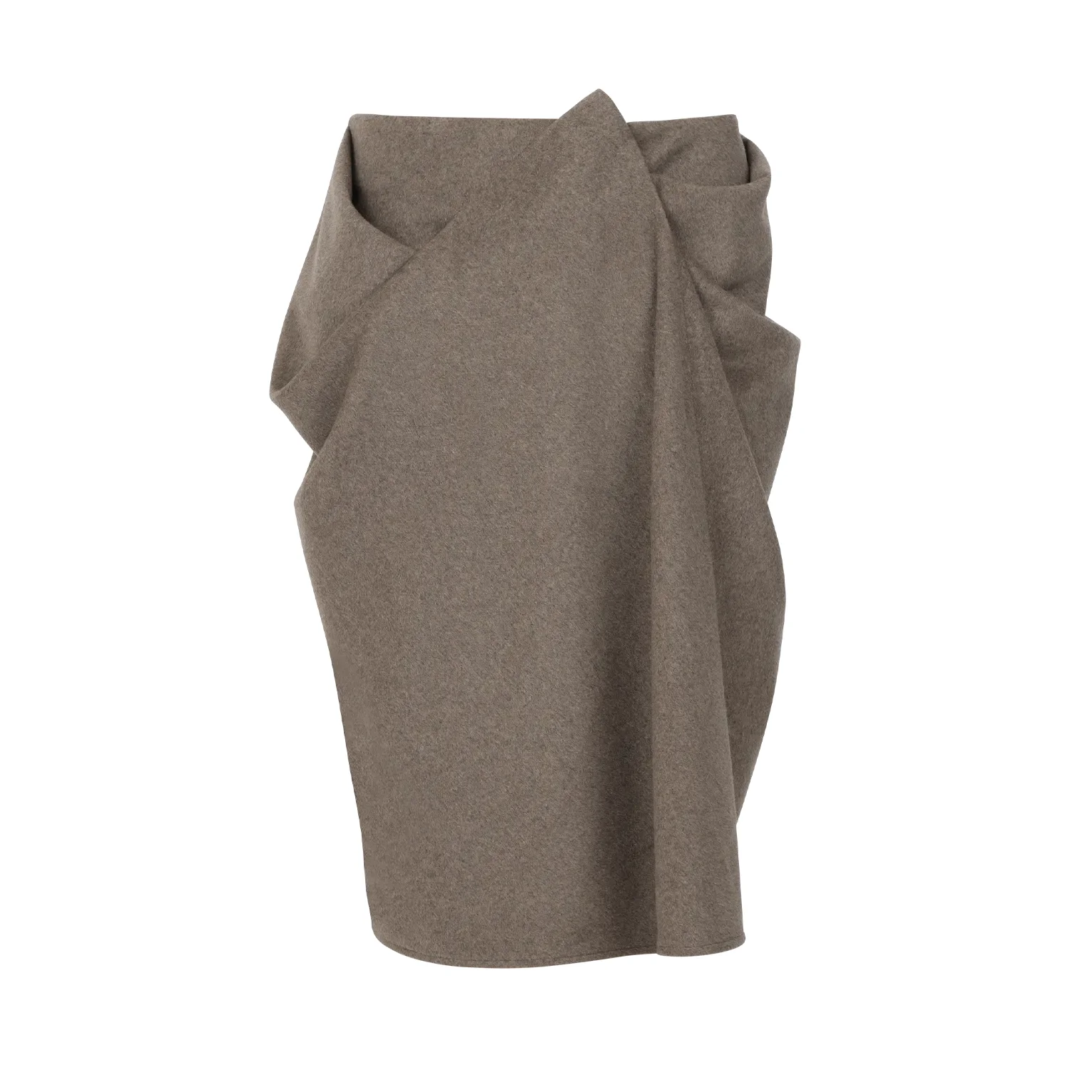 - 55% POLYESTER 45% WOOL - DRAPED SKIRT - PLEAT DETAILING - BACK VENT - FULLY LINED - KNEE LENGTH - YKK INVISIBLE ZIPPER