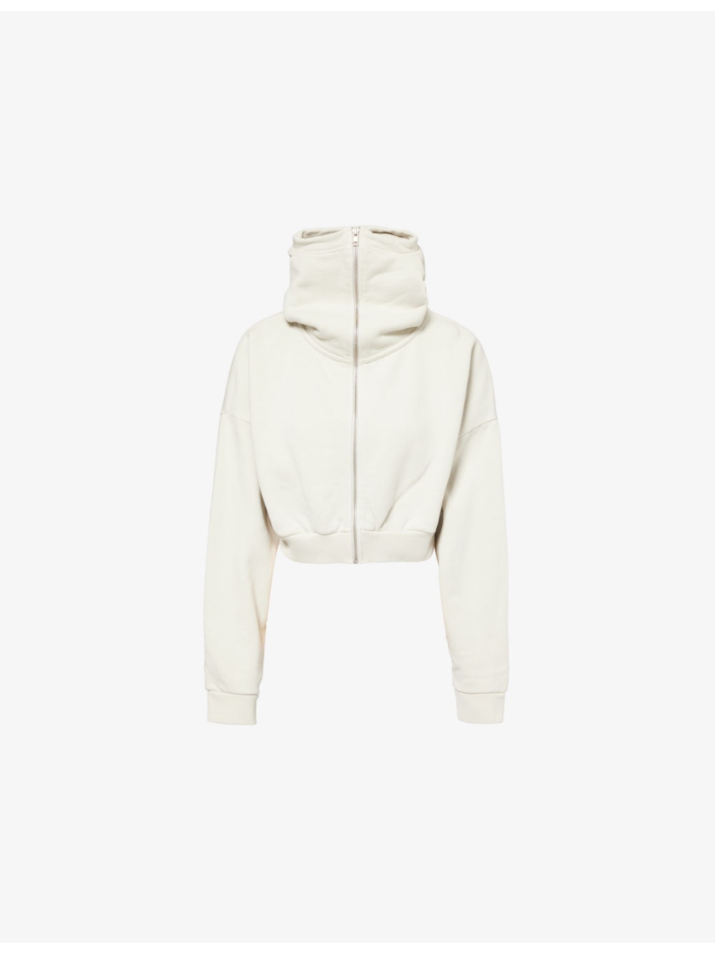 PRODUCT DETAILS - ENTIRE STUDIOS cotton-jersey hoody - 100% cotton - Exposed zip fastening at front - Relaxed fit, cropped, high neck, hood, dropped shoulders, long sleeves, brushed interior, ribbed trims - Machine wash at 30°C - True to size - Model is 5ft 10in/1.78m and wears a size small - Midweight, stretchy Ref: R04422947