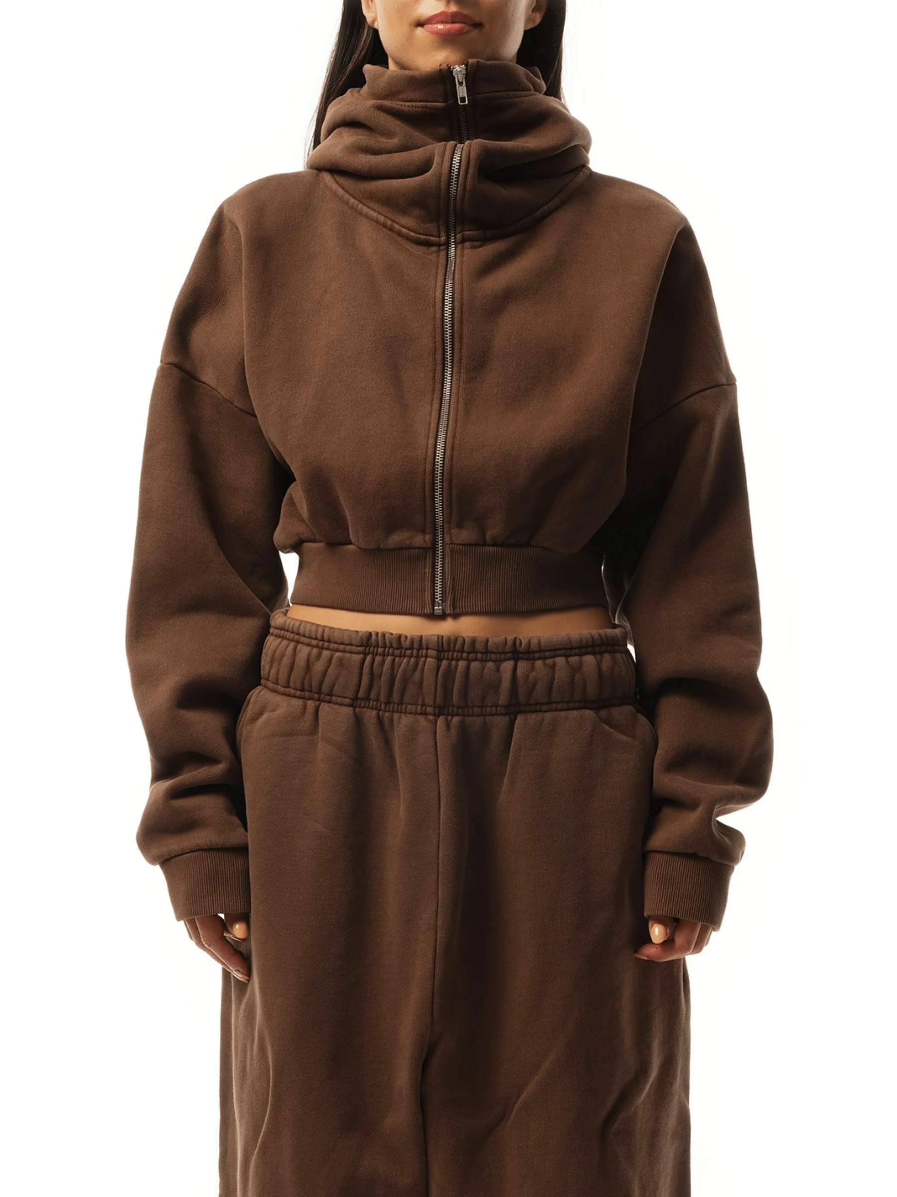 With its cropped length and full zip design, it offers a modern and trendy look. Made from high-quality materials, it provides both comfort and durability. Perfect for everyday wear or as a layering piece, this hoodie is a must-have for any fashion-forward individual. - Composition: 100% Cotton - Front zip fastening - Classic hood - Long sleeves - Ribbed cuffs and hem - Made in China Model is 175 cm and wears size S SKU: ES2156BT