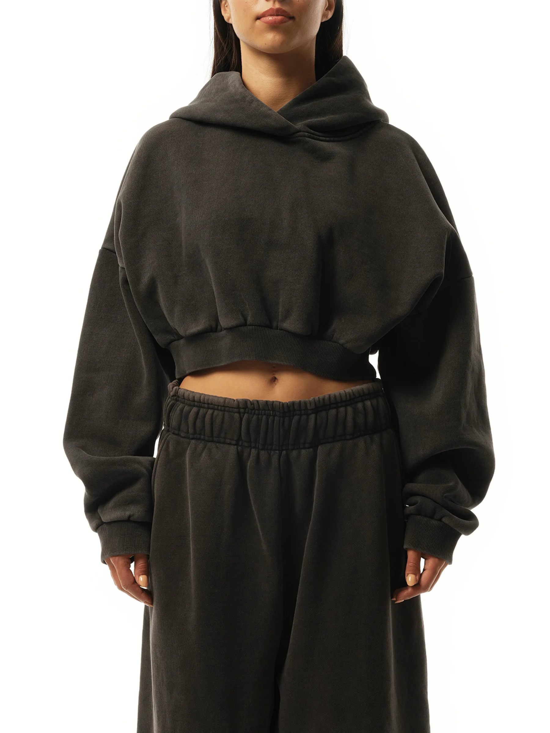 Introducing our Cropped Heavy Hood in Washed Black - the perfect blend of style and comfort. Made with premium materials, this cropped hoodie is designed to keep you warm and stylish. With its washed black color, it adds a touch of edginess to any outfit. - Composition: 100% Cotton - Long sleeves - Ribbed cuffs and hem - Cropped - Fleece lining - Made in China Model is 175 cm and wears size S SKU: ES2392WB