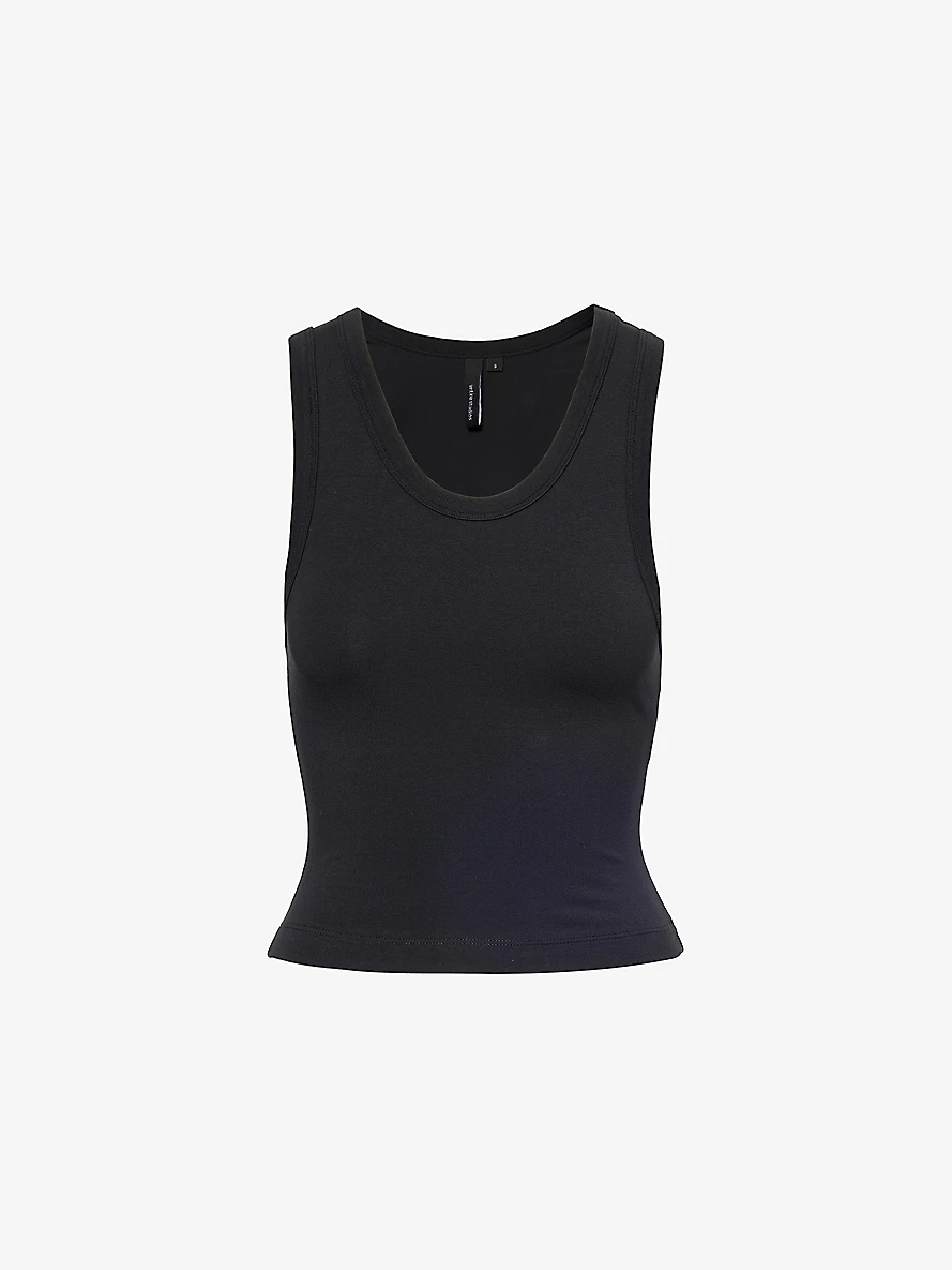 Cropped Scoop-Neck Stretch-Cotton Tank Top