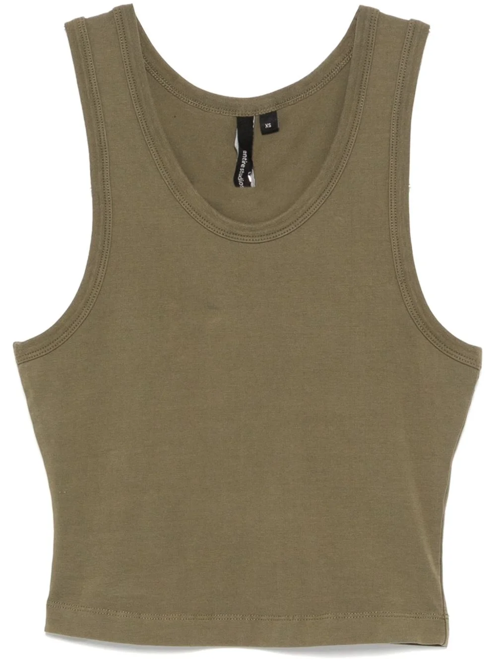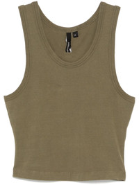 cropped tank top Highlights - Olive green - Organic cotton blend - Jersey texture - Cropped - Scoop neck - Sleeveless - Straight hem Made in Italy Composition Organic Cotton 90%, Elastane 10% SIZE & FIT Model measurements Height 5 ft 10 in(1.77 m) Bust/Chest 33.07 in(84 cm) Hips 37 in(94 cm) Waist 24.8 in(63 cm) FittingInformation Designed for a close fit throughout Cropped in length Made from a midweight stretch fabric, this piece offers elasticity and flexibility when worn