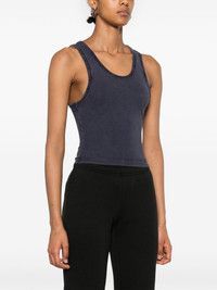 cropped tank top Highlights - Navy blue - Organic cotton blend - Lightweight jersey - Cropped - Scoop neck - Sleeveless - Straight hem Made in Italy Composition Organic Cotton 95%, Elastane 5% SIZE & FIT Model measurements Height 5 ft 10 in(1.77 m) Bust/Chest 33.07 in(84 cm) Hips 37 in(94 cm) Waist 24.8 in(63 cm) FittingInformation Designed for a close fit throughout Cropped in length Made from a midweight stretch fabric, this piece offers elasticity and flexibility when worn