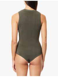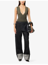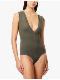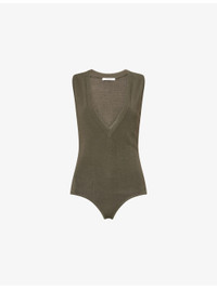 PRODUCT DETAILS - Entire Studios knitted bodysuit - 100% viscose - Pressed stud fastening at gusset - Slim fit, deep V-neck, sleeveless, all-over fine-knit patter ribbed trims, slight-coverage at back - Machine wash at 30°C - True to size - Model is 5ft 10in/1.78m and wears a size small - Lightweight, stretchy Ref: R04480555