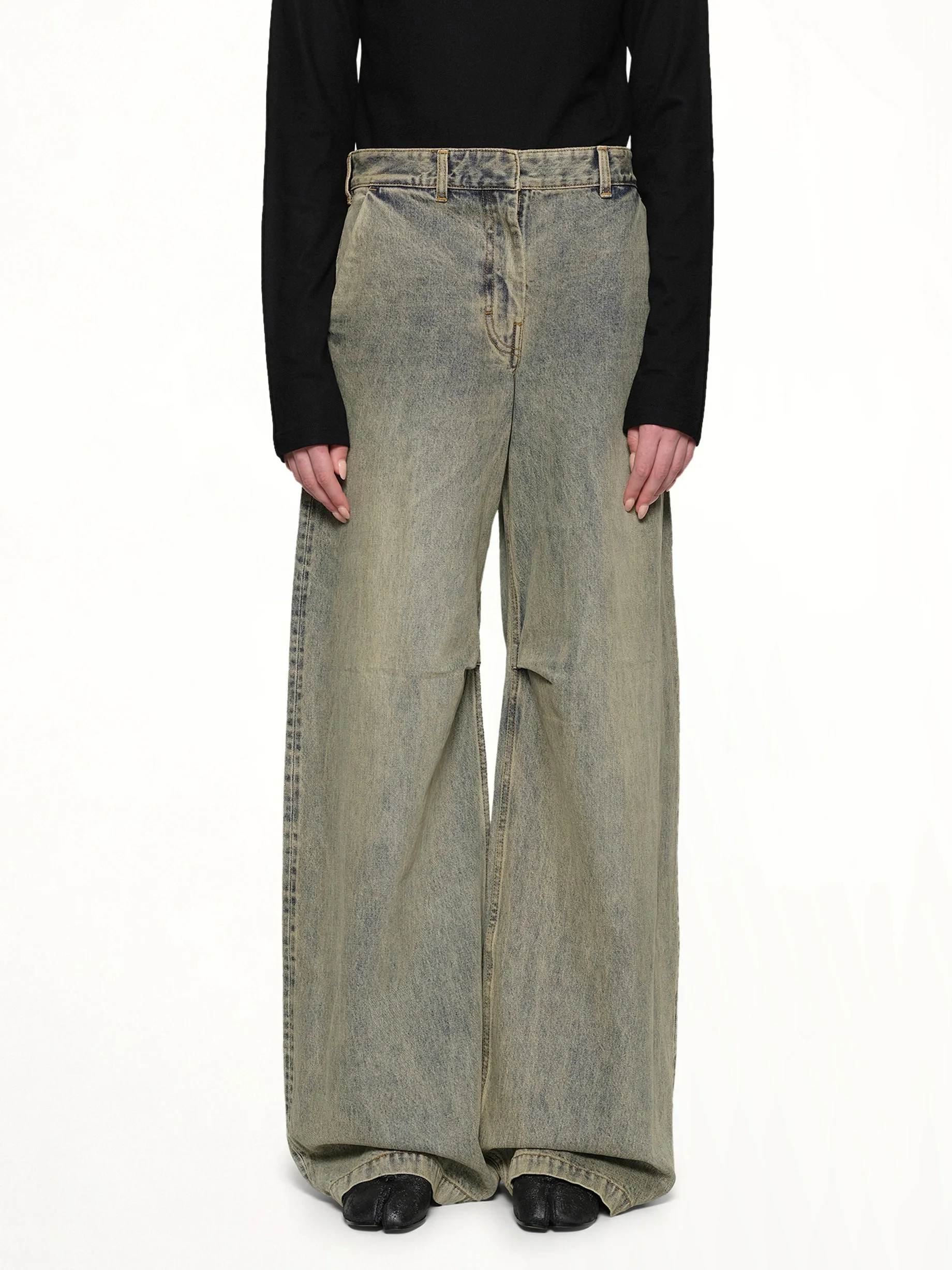 Entire Studios's Dem Jeans in Surfacewave is a modern take on classic denim, offering a unique blend of style and comfort. These jeans are designed to make a statement while providing a versatile fit for any occasion. - Composition: 100% Cotton Selvedge Denim - Contemporary design with a distinctive wash - Relaxed fit for everyday wear - Features a classic five-pocket style - Button and zip fly closure - Subtle branding details - Made in China Model is 178 cm and wears size S SKU: ESW-S25-11006-SW
