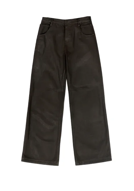 - 100% COTTON DENIM - COATED DENIM - CF CONCEALED BUTTON CLOSURE - PLEAT DETAIL AT KNEE - BAGGY FIT - FRONT SLANT POCKETS - BRANDED HARDWARE