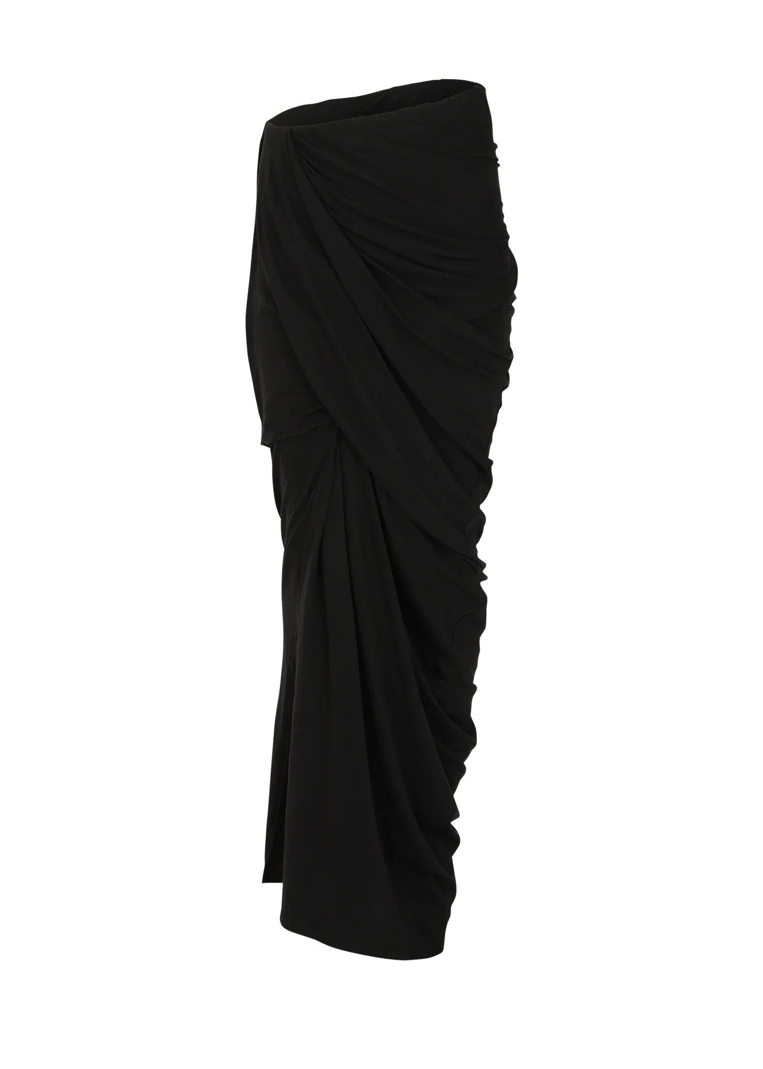 - - 94% COTTON 6% ELASTANE - - 115 GSM - - DRAPED SKIRT - - FLOOR LENGTH - - PLEAT DETAILING