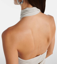 Designed to outlast the archives, Entire Studios constructs each piece with meticulous attention to detail and longevity in mind. This minidress is crafted from a cotton-blend jersey, has draped details, and a halter neckline. Product Details - Material: 94% cotton, 6% elastane - Care instructions: machine wash at 30 degrees - Made in China - Designer color name: Glacier - Item color: beige - Collar: cowl neck - Hem: uneven - Item number: P01073235 Size & Fit - True to size - Low back - Cinched waist - Stretchy fabric - The model seen in the picture is 178cm-5'10" and wearing a size XS