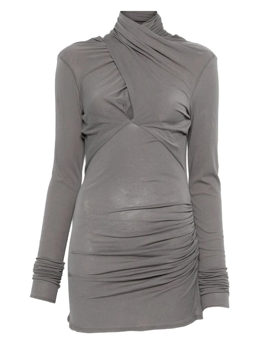 draped top Highlights - Grey - Draped detail - Long sleeves - High neck Imported Composition Cotton 94%, Elastane 6% SIZE & FIT Model measurements Height 5 ft 10 in(1.78 m) Bust/Chest 31.49 in(80 cm) Hips 37 in(94 cm) Waist 23.62 in(60 cm) Washing instructions Machine Wash