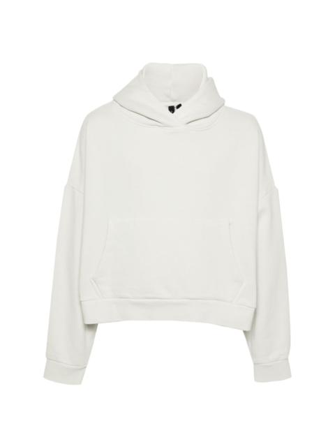 drop-shoulder cotton hoodie Highlights - Black - Organic cotton - Jersey texture - Classic hood - Drop shoulder - Long sleeves - Ribbed cuffs and hem - Front pouch pocket - French terry lining - Straight hem - When buying this unisex item, keep in mind that it is graded in standard men's sizing. Imported Composition Organic Cotton 100% SIZE & FIT Model measurements Height 5 ft 10 in(1.77 m) Bust/Chest 31.88 in(81 cm) Hips 36.22 in(92 cm) Waist 24.01 in(61 cm) Measurement SLEEVE LENGTH 20.47 in(52 cm) LENGTH 20.47 in(52 cm) Shoulder Width 29.13 in(74 cm) FittingInformation This piece is unisex – if you usually select men's sizing expect a loose fit throughout; if you usually select women's sizes, expect an oversized fit Made from a midweight non-stretch fabric, this piece offers minimal elasticity when worn Washing instructions Machine Wash