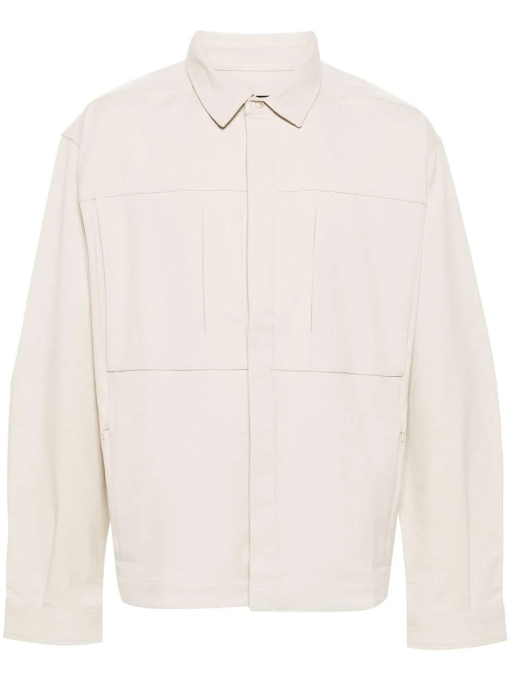 Duty shirt Highlights - Ivory white - Twill weave - Piped-trim detailing - Classic collar - Drop shoulder - Long sleeves - Buttoned cuffs - Two slit pockets at the chest - Two side zip-fastening pockets - No lining - Straight hem - Concealed front button fastening - When buying this unisex item, keep in mind that it is graded in standard men's sizing. Imported Composition Polyester 60%, Rayon 20%, Wool 13%, TENCEL™ 5%, Spandex/Elastane 2% SIZE & FIT Model measurements Height 5 ft 10 in(1.78 m) Bust/Chest 33.07 in(84 cm) Hips 36.61 in(93 cm) Waist 24.8 in(63 cm) FittingInformation This unisex piece is designed for a loose fit whether you usually select women's or men's sizes Made from a midweight stretch fabric, this piece offers elasticity and flexibility when worn