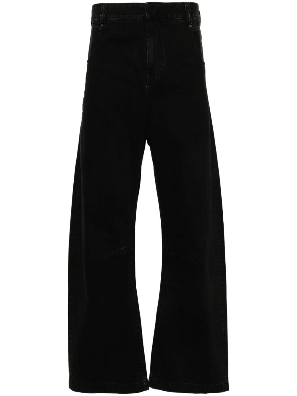 Gem Magnetite jeans Highlights - Black - Cotton - Denim - Four front slip pockets - Two side slit pockets - Two rear patch pockets - Logo patch to the rear - Wide leg - Concealed fly and button fastening - When buying this unisex item, keep in mind that it is graded in standard men's sizing. Made in United Kingdom Composition Cotton 100% SIZE & FIT Model measurements Height 6 ft 2 in(1.87 m) Bust/Chest 36.41 in(92.5 cm) Hips 37 in(94 cm) Waist 29.52 in(75 cm) FittingInformation This piece is unisex and is designed with a wide-leg, whether you usually select women's or men's sizes Sturdy and hard-wearing, this denim piece offers no stretch Washing instructions Machine Wash