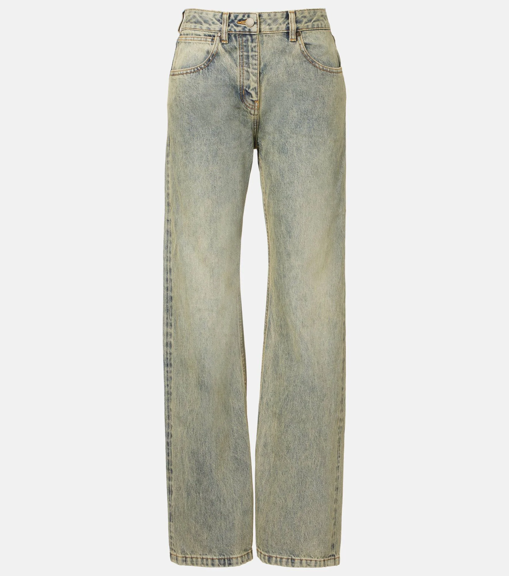 Designed to outlast the archives, Entire Studios constructs each piece with meticulous attention to detail and longevity in mind. These jeans are cut to a high-rise straight-leg silhouette and feature a charming faded effect. Product Details - Material: 100% cotton - Care instructions: machine wash at 30 degrees - Made in China - Designer color name: Surface Wave - Item color: blue - Hardware color: bronze - Closure: zip and button fastening - Belt loops - Pockets: five pockets - Item number: P01071043 Size & Fit - True to size - Non-stretchy fabric - Straight leg - High-rise - The model seen in the picture is 178cm-5'10" and wearing a size XS