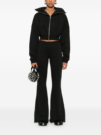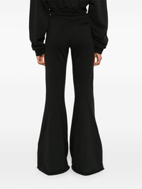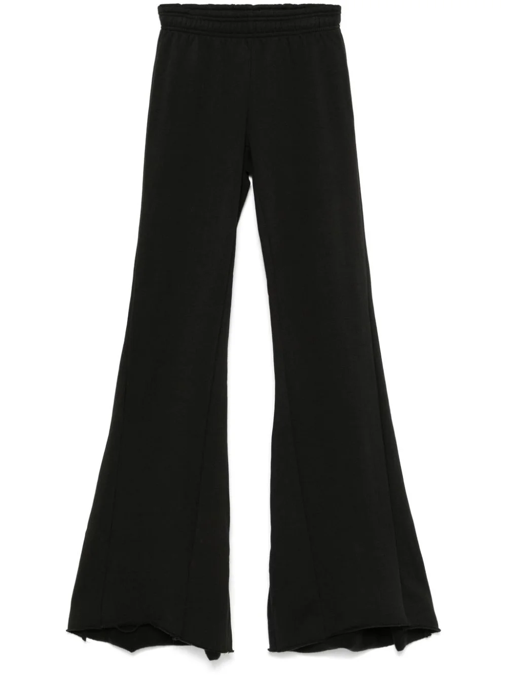 flared track pants Highlights - Black - Organic cotton - Jersey texture - Flared - Elasticated waistband with internal drawstring - Rear welt pocket - Fleece lining - Rolled trim Imported Composition Organic Cotton 100% SIZE & FIT Model measurements Height 5 ft 10 in(1.77 m) Bust/Chest 33.07 in(84 cm) Hips 37 in(94 cm) Waist 24.8 in(63 cm) FittingInformation Designed with a flared hem, these trousers allow for a close fit at the waist with a slim fit over the leg and widening towards the hem The elasticated waist allows for a comfortable fit Made from a midweight non-stretch fabric, this piece offers minimal elasticity when worn