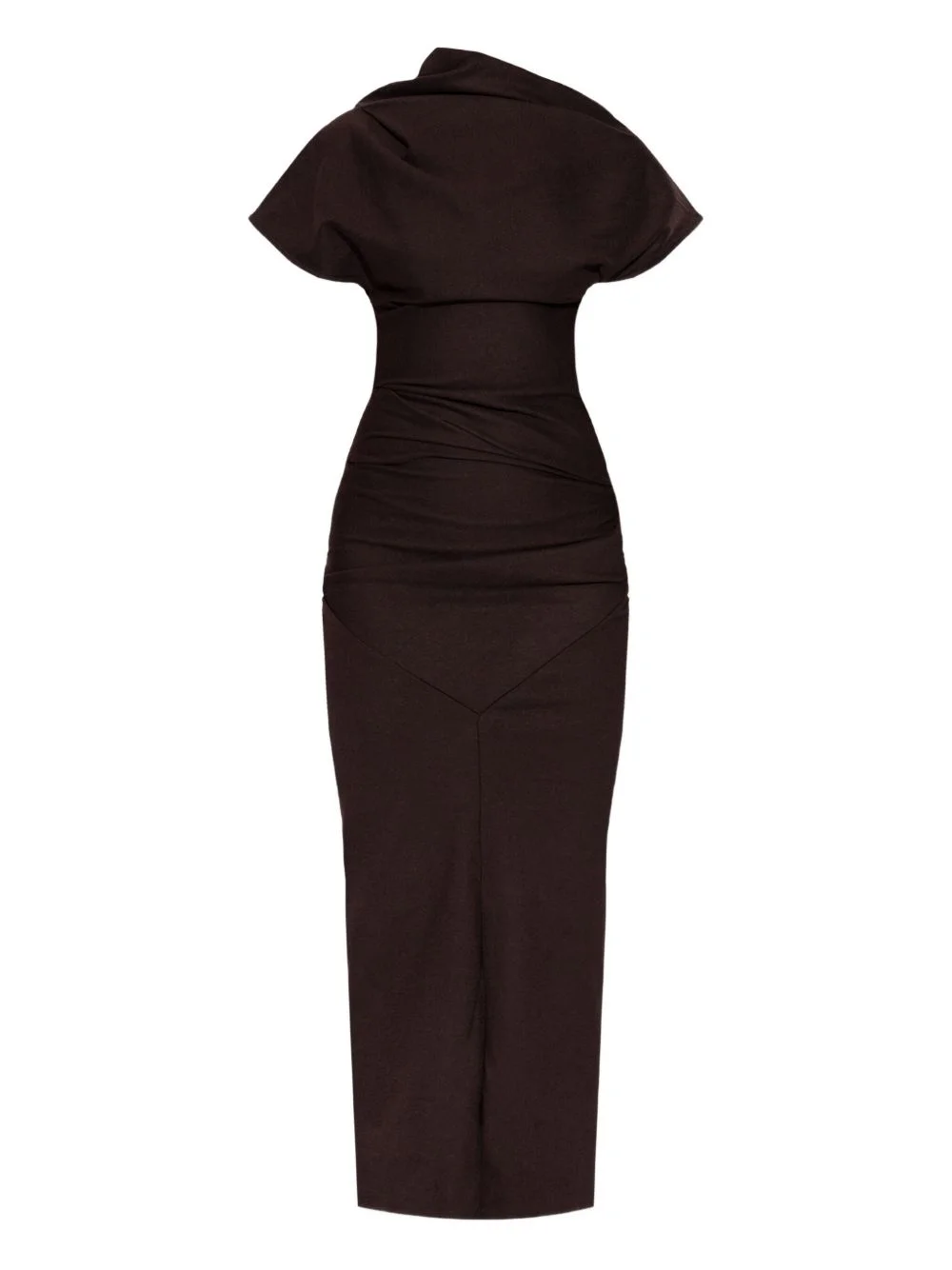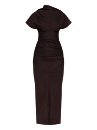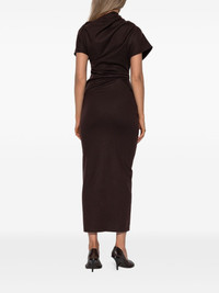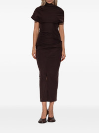 draped split midi dress Highlights - Brown - Draped design - Short sleeves - Front split - High neck Imported Composition Wool 100% Washing instructions Read Manufacturer Guidelines