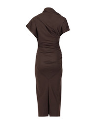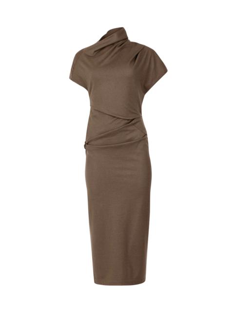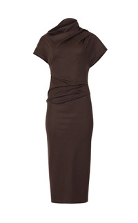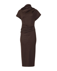 100% STRETCH WOOL - DRAPED DRESS - PLEAT DETAILING - FORM FITTED - MIDI LENGTH - BACK SPLIT - YKK INVISIBLE ZIPPER