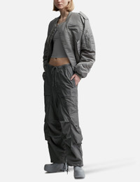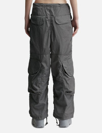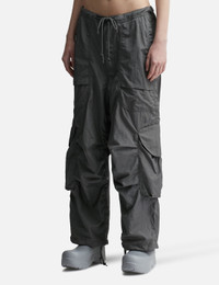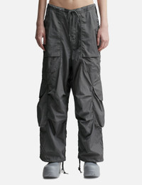 - Entire Studios - Freight Cargo - Slightly oversized fit - Zip fly with metal shank button - Wide leg - Drawstring waist and bottom hem - Waist pockets - Two cargo pockets with metal snap closure - Color: Rock - Material: 100% Nylon - See more Pants and Clothing SIZING Male - Model wears size M - Model measures: Height 187cm, Chest 36”/91cm, Waist 28”/72cm, Hip 36”/91cm - Model wears size S - Model measures: Height 179cm, Chest 32”/81cm, Waist 23’’/58.42cm, Hip 35’’/88.9cm