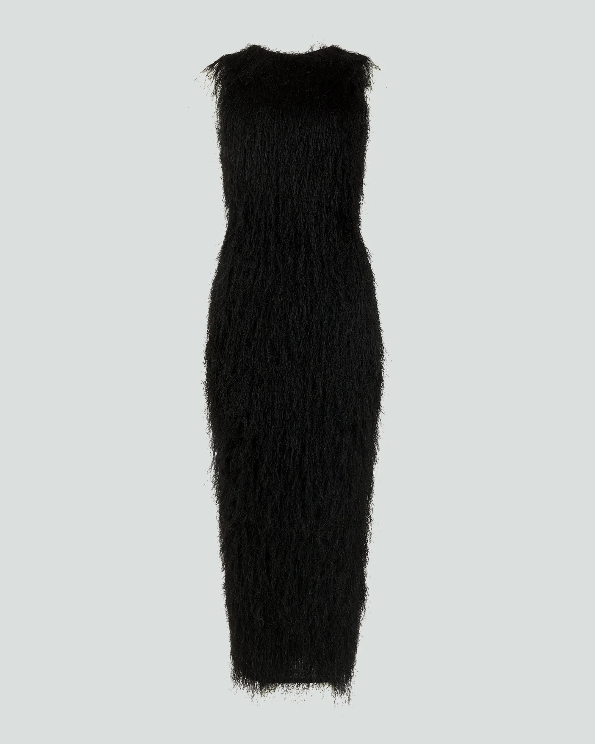 - 100% POLYESTER FRINGE - BOAT NECK LINE - OPEN BACK - MIDI LENGTH - FULLY LINED