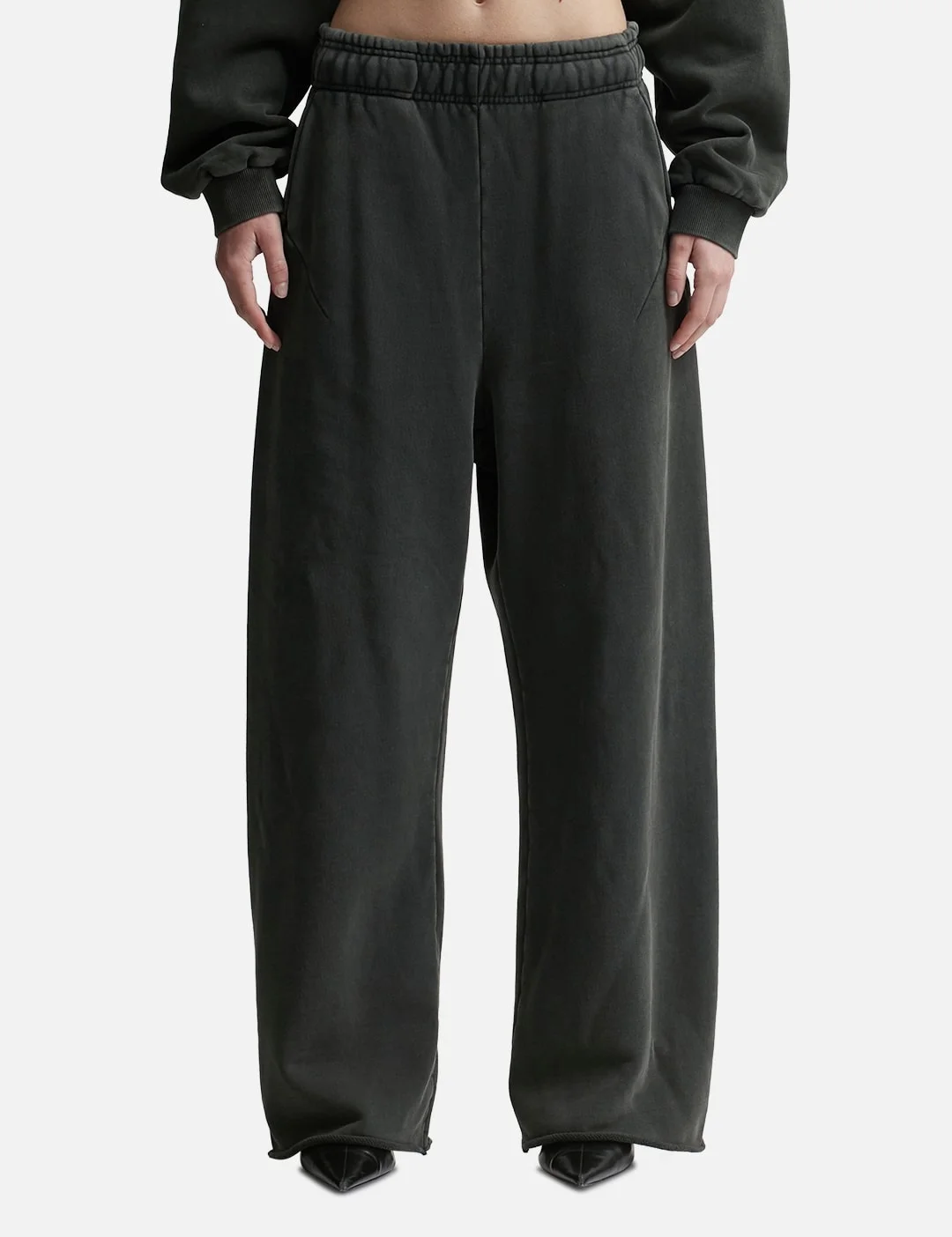 - Entire Studios - Full Sweatpants - Enzyme washed organic cotton fabric - Elasticated waistband - Side pockets; two rear pockets - Due to the special wash process colors may slightly vary for each product - Color: Washed Black - Material: 100% Organic Cotton - See more Pants and Clothing SIZING - Model wears size XS - Model measures: Height 179cm, Chest 32”/81cm, Waist 23’’/58.42cm, Hip 35’’/88.9cm