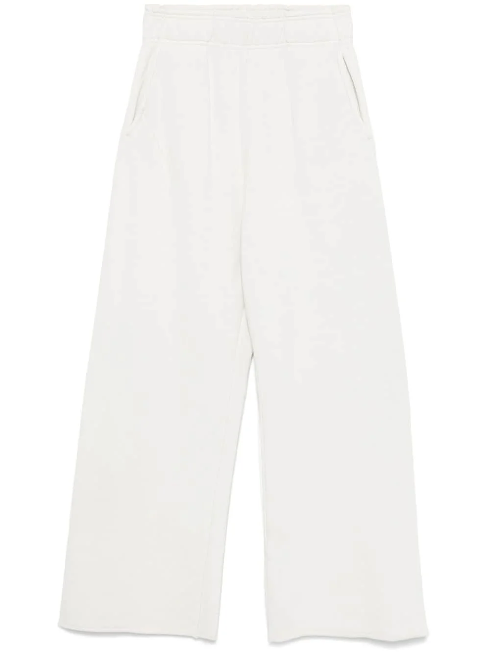 Full track pants Highlights - Off-white - Organic cotton - Jersey texture - Elasticated waistband with internal drawstring - Two side slit pockets - Two rear welt pockets - French terry lining - Rolled trim - When buying this unisex item, keep in mind that it is graded in standard men's sizing. Imported Composition Organic Cotton 100% SIZE & FIT Model measurements Height 5 ft 10 in(1.78 m) Bust/Chest 33.85 in(86 cm) Hips 36.61 in(93 cm) Waist 26.77 in(68 cm) Measurement FRONT RISE 17.32 in(44 cm) INSIDE LEG 29.52 in(75 cm) HIPS 42.12 in(107 cm) WAIST 26.37 in(67 cm) FittingInformation This piece is unisex and is designed with a wide-leg, whether you usually select women's or men's sizes Adjust this piece’s waistband to your preference using the drawstring Made from a midweight non-stretch fabric, this piece offers minimal elasticity when worn