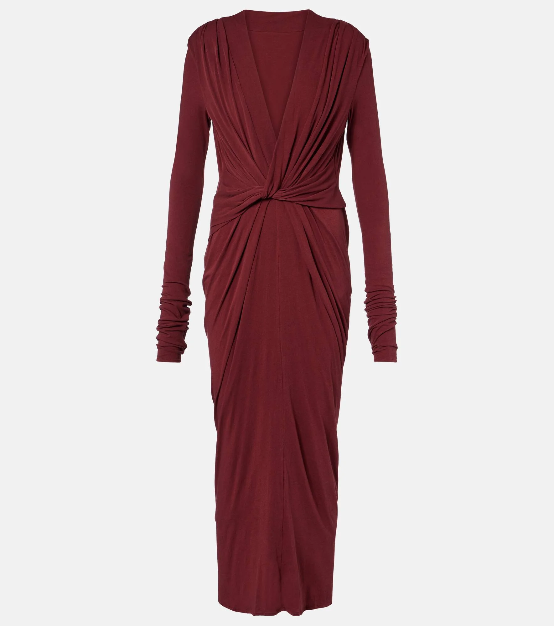 Designed to outlast the archives, Entire Studios constructs each piece with meticulous attention to detail and longevity in mind. Crafted from cotton blend jersey, this long-sleeved maxi dress features an elegantly draped silhouette with a gathered waist. Product Details - Material: 94% cotton, 6% elastane - Care instructions: machine wash at 30 degrees - Made in China - Designer color name: Scarlet - Item color: burgundy - Collar: V-neck - Fully lined - Item number: P01073245 Size & Fit - Fits large to size - we recommend trying one size smaller - Cinched waist - Stretchy fabric - The model seen in the picture is 178cm-5'10" and wearing a size XXS