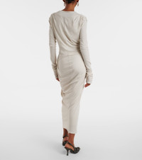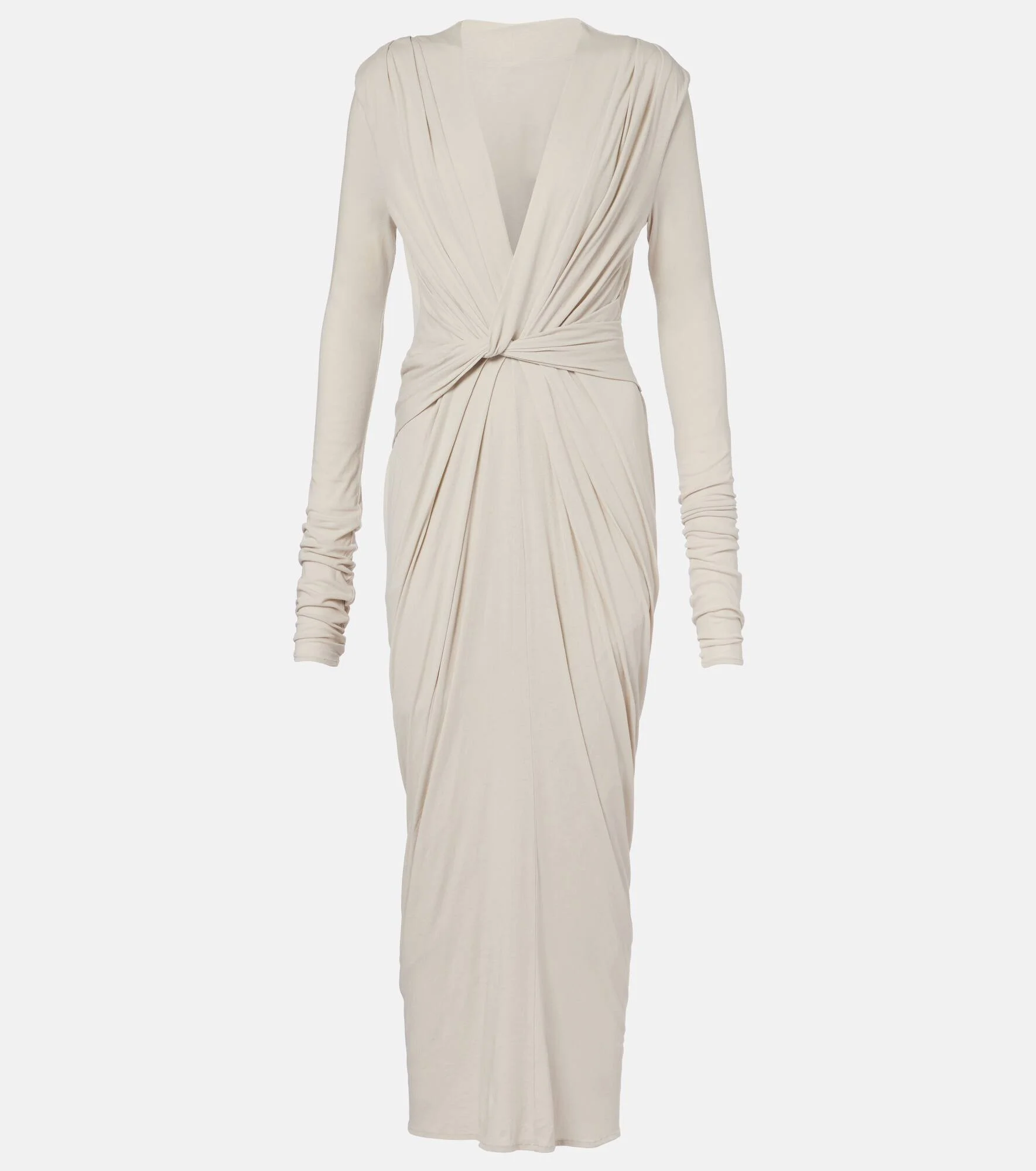 Designed to outlast the archives, Entire Studios constructs each piece with meticulous attention to detail and longevity in mind. Crafted from cotton blend jersey, this long-sleeved maxi dress features an elegantly draped silhouette with a gathered waist. Product Details - Material: 94% cotton, 6% elastane - Care instructions: machine wash at 30 degrees - Made in China - Designer color name: Glacier - Item color: gray - Item number: P01073241 Size & Fit - Fits large to size - we recommend trying one size smaller - Cinched waist - Stretchy fabric - The model seen in the picture is 178cm-5'10" and wearing a size XXS